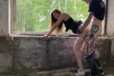 Проучил студентку, заставив отсосать и встать раком на заброшке 329K