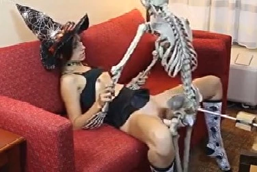 Скелет с резиновым членом трахает милую ведьмочку