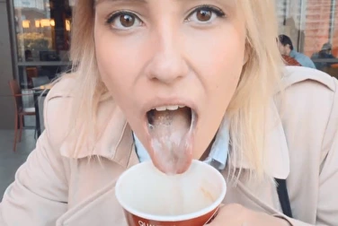 Кончил девушке в рот и угостил её кофе, чтобы она смогла запить сперму 153K